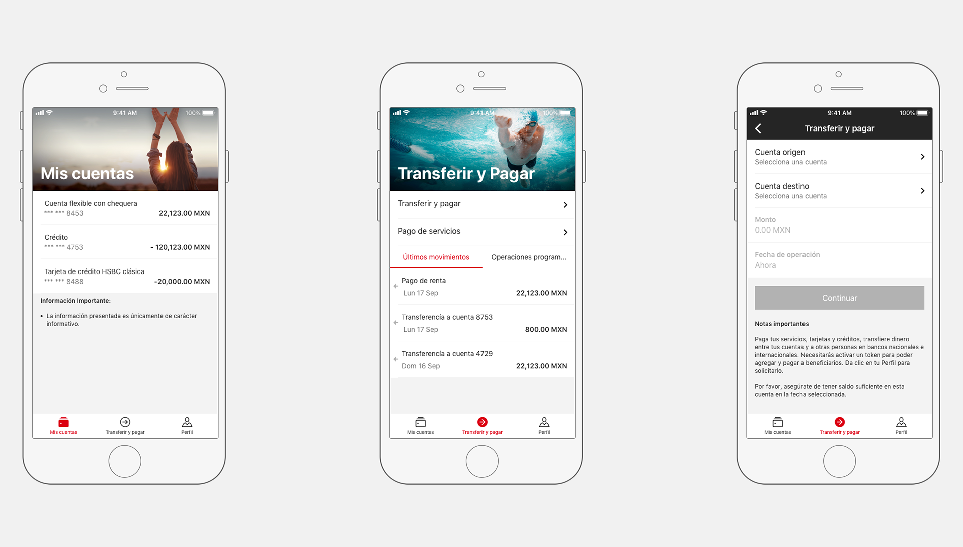 HSBC Mexico was in the process of migrating their main app to a new, global standard. However, specific laws from the country of origin make some processes a little more complicated to implement. As such, UX flows and copy for this version of the app need to be accomodated to help the user understand it better, and comply with local banking requirements by law.